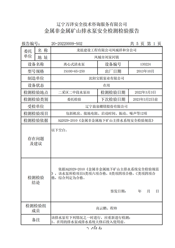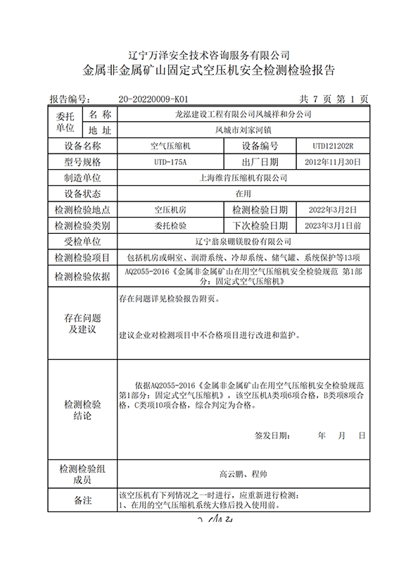 | 受检单位 | 辽宁翁泉硼镁股份有限公司 | |
