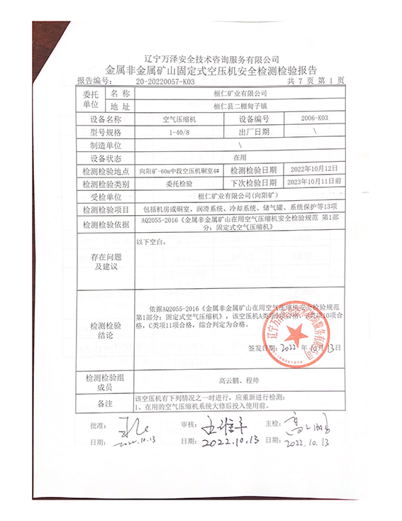 | 受检单位 | 桓仁矿业有限公司 | |