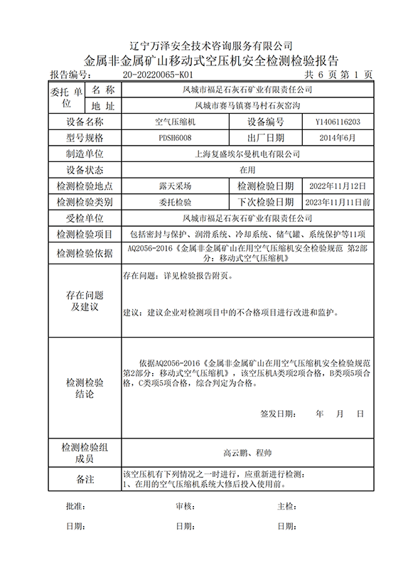 | 受检单位 | 凤城市福足石灰石矿业有限责任公司 | |