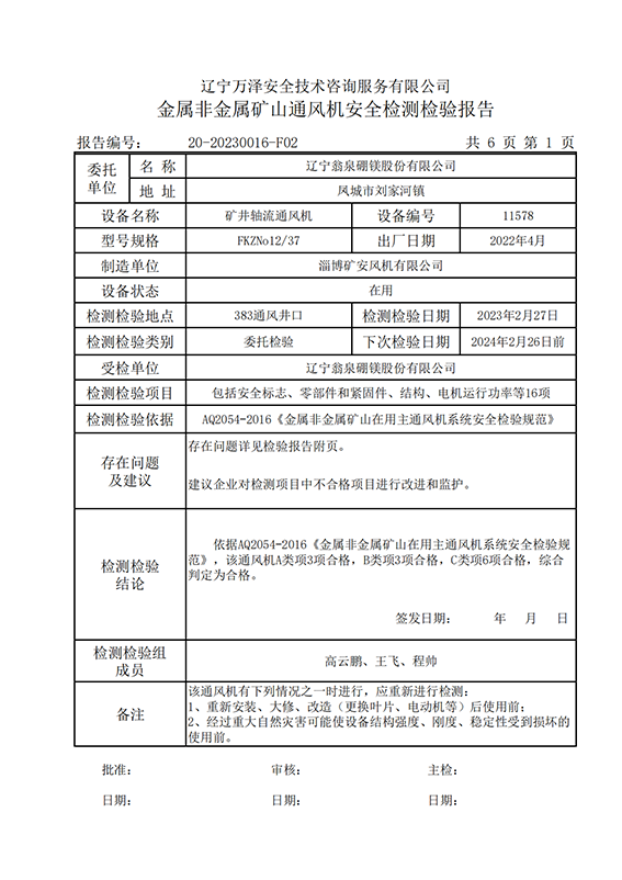 | 受检单位 | 辽宁翁泉硼镁股份有限公司 | |