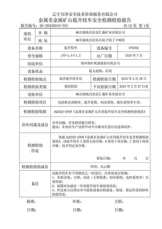 | 受检单位 | 岫岩满族自治县汇鑫矿业有限公司 | |