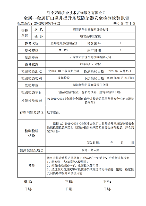 | 受检单位 | 朝阳新华钼业有限责任公司 | |