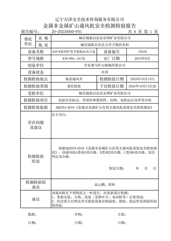 | 受检单位 | 岫岩满族自治县富博矿业有限公司 | |