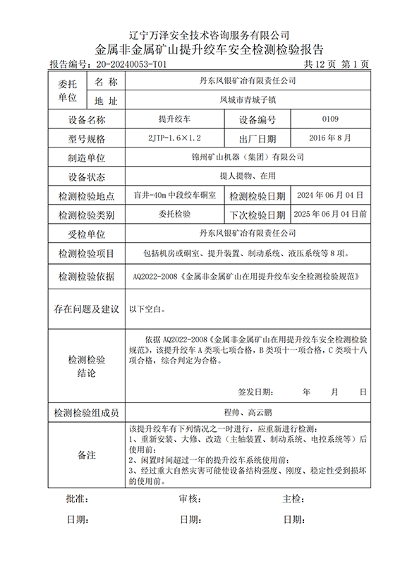 | 受检单位 | 20-20240053丹东凤银矿冶有限责任公司 | |
