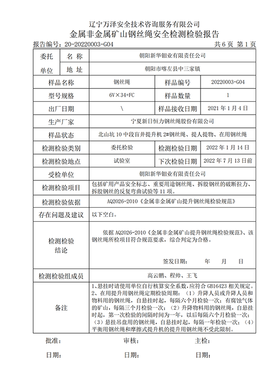 | 受检单位 | 朝阳新华钼业有限责任公司 | |