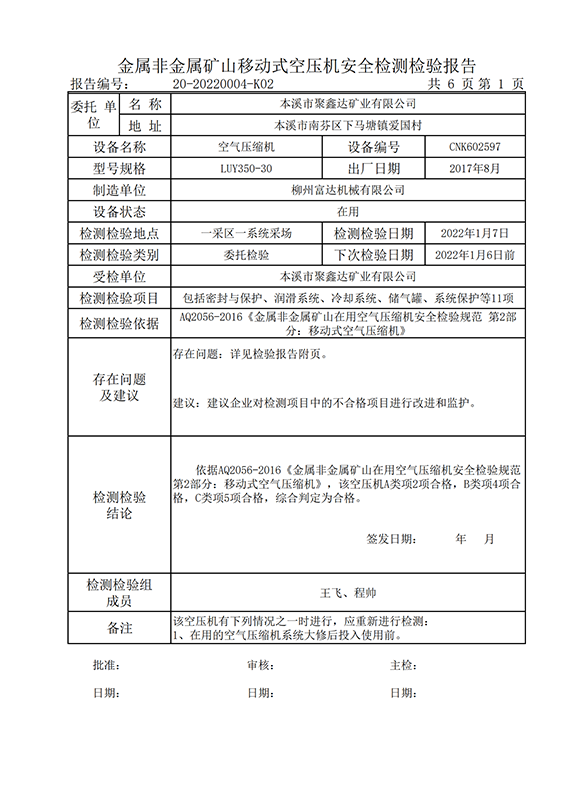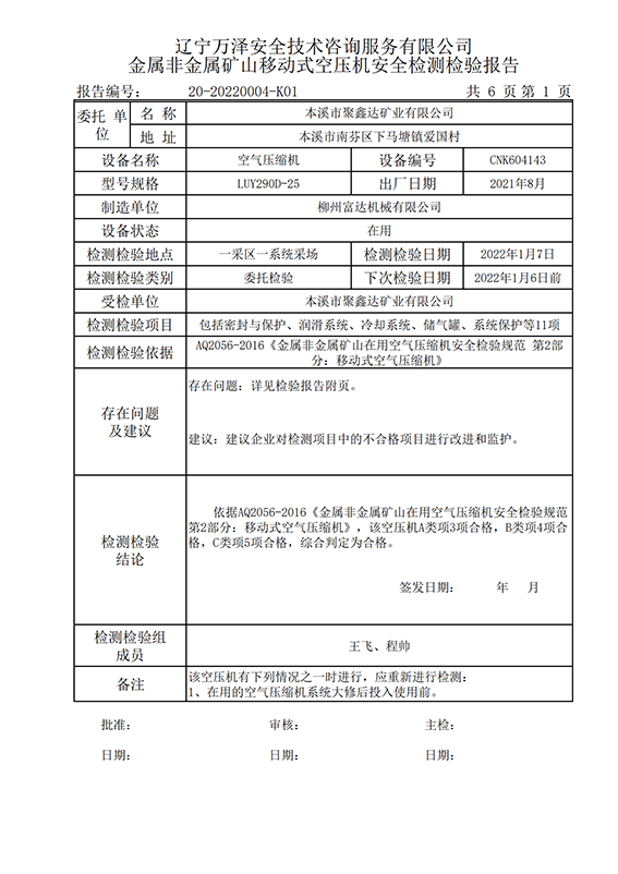 | 受检单位 | 本溪市聚鑫达矿业有限公司 | |