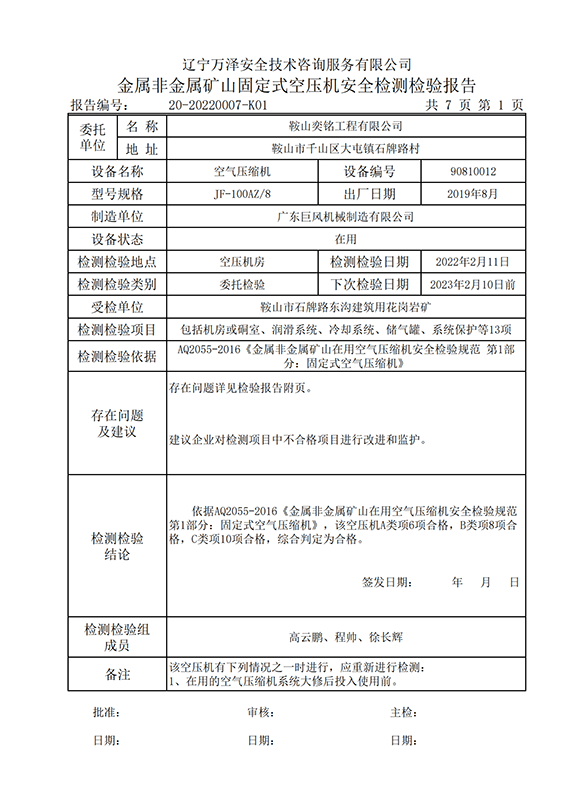 | 受检单位 | 鞍山奕铭工程有限公司 | |