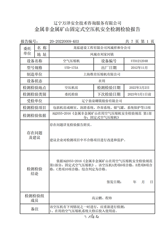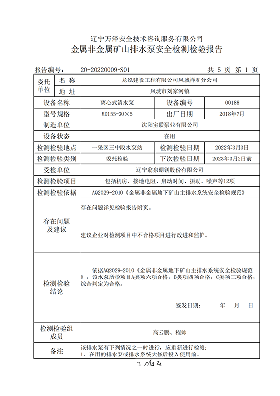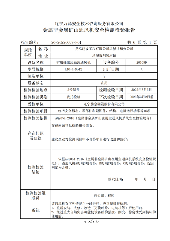 | 受检单位 | 辽宁翁泉硼镁股份有限公司 | |