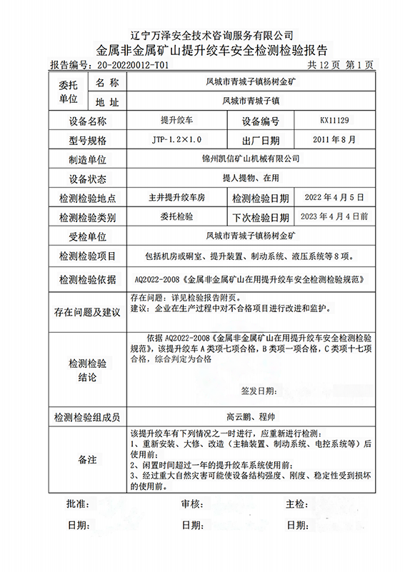 | 受检单位 | 凤城市青城子镇杨树金矿 | |