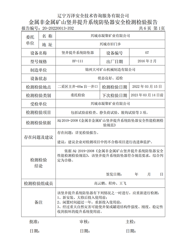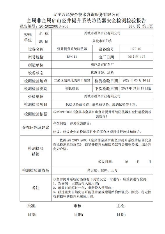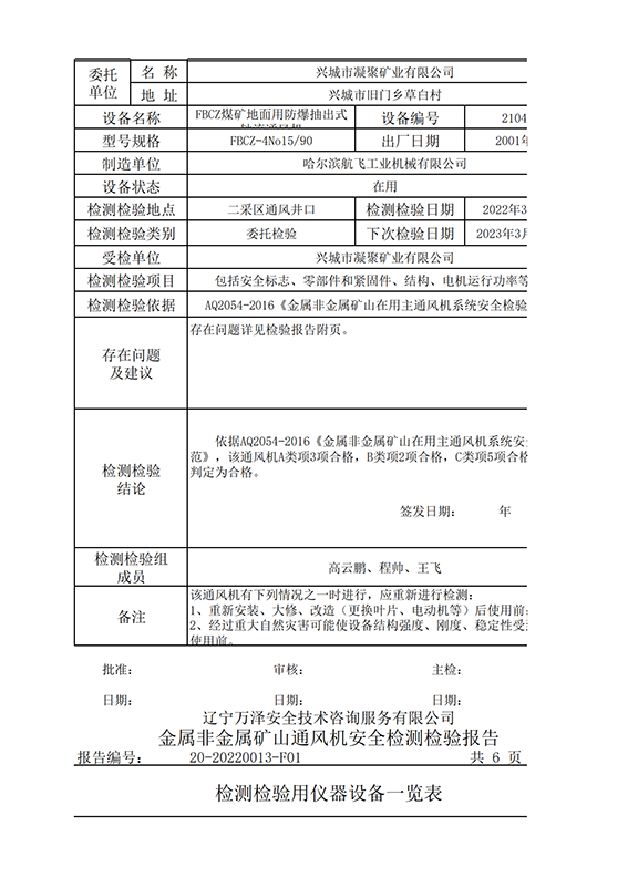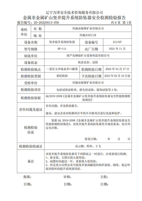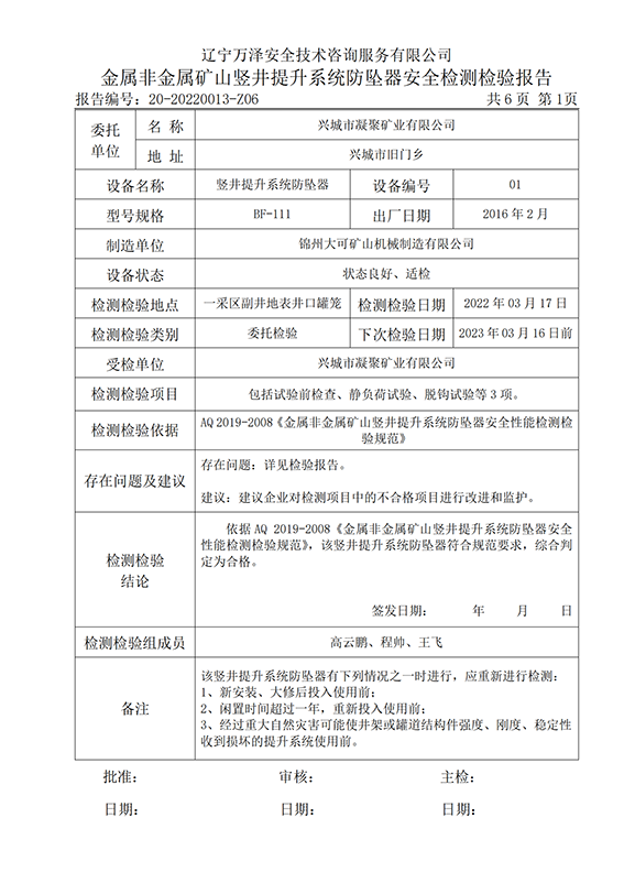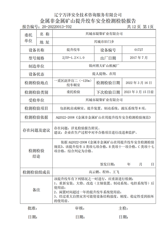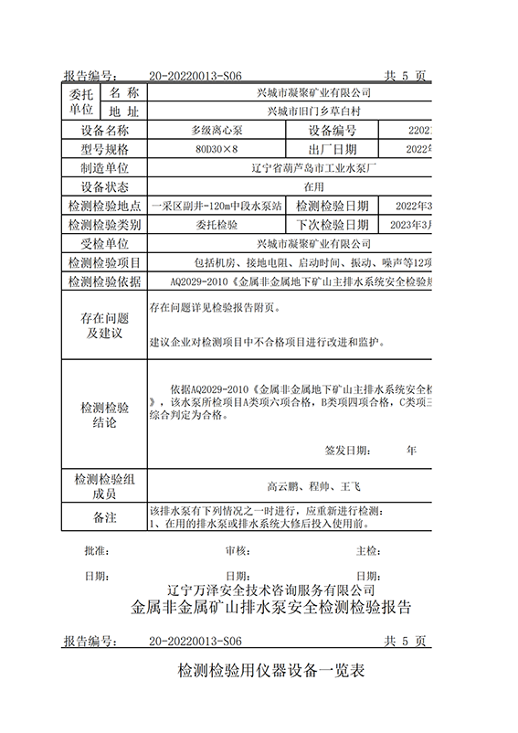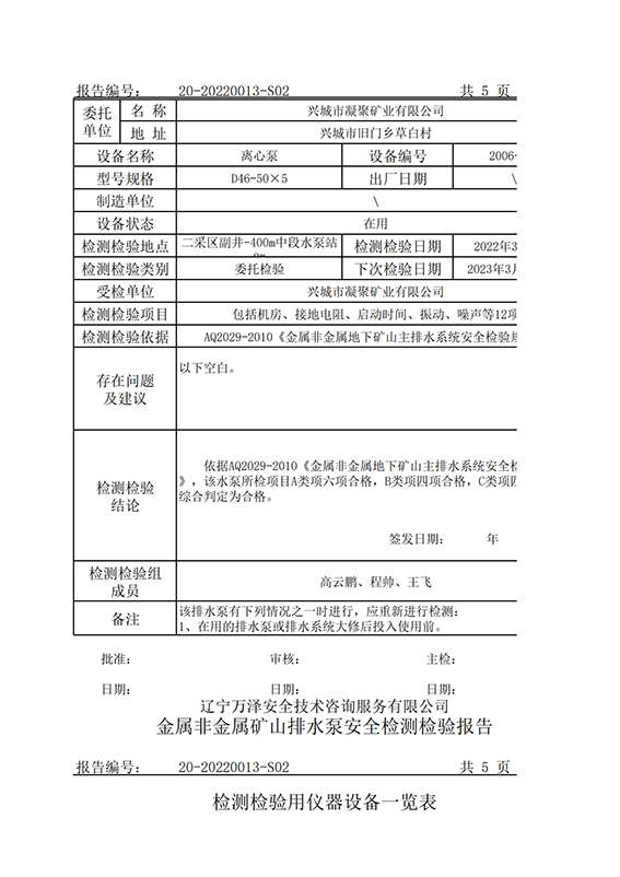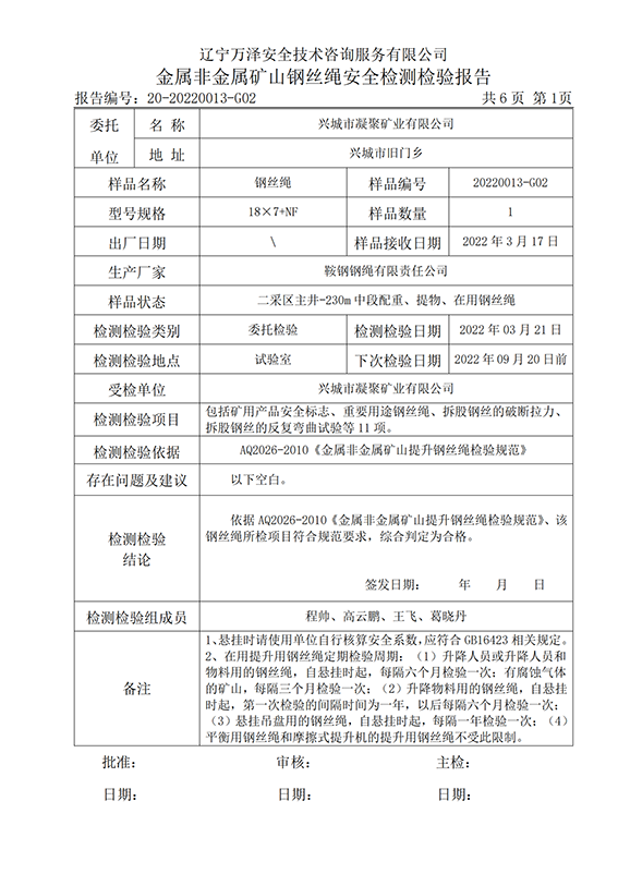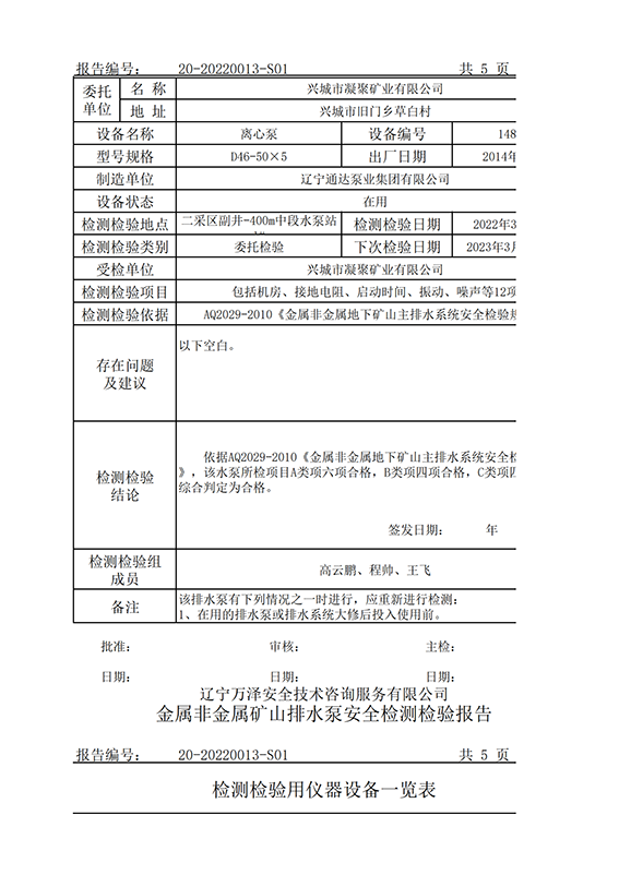 | 受检单位 | 兴城市凝聚矿业有限公司 | |
