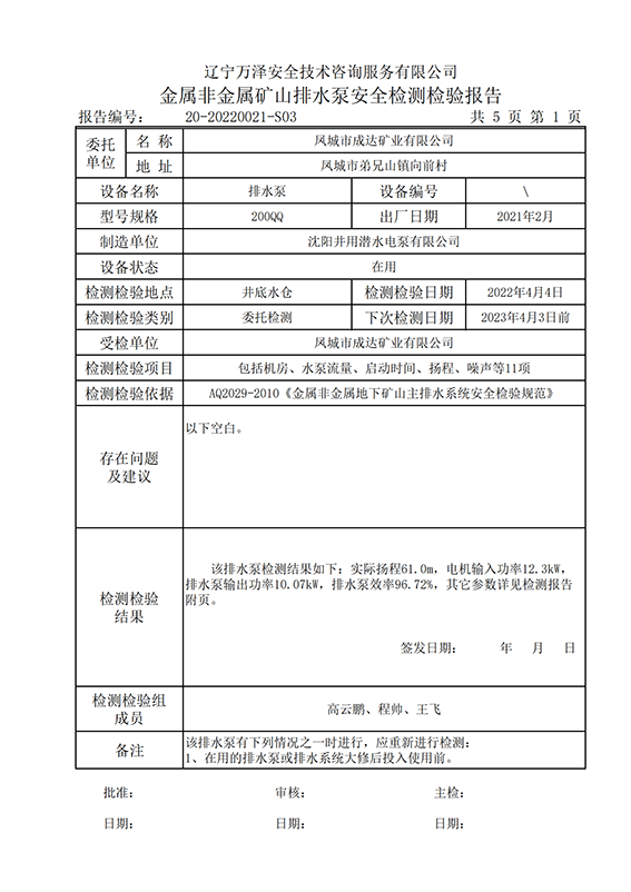 | 受检单位 | 凤城市成达矿业有限公司 | |