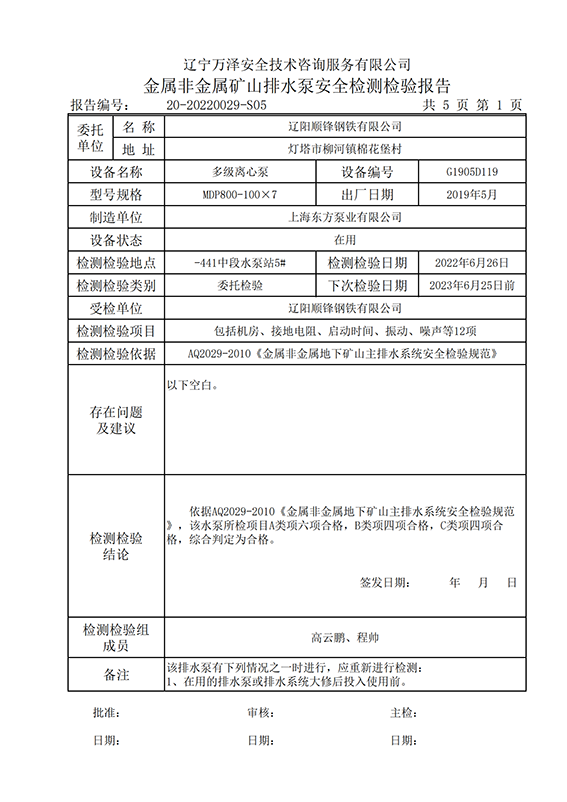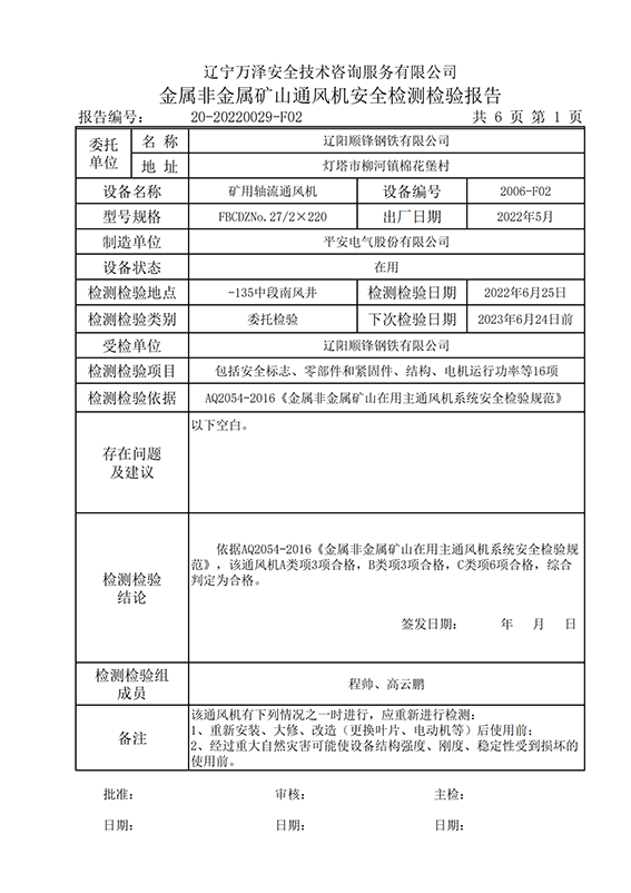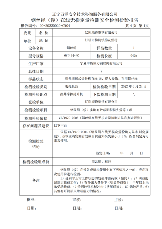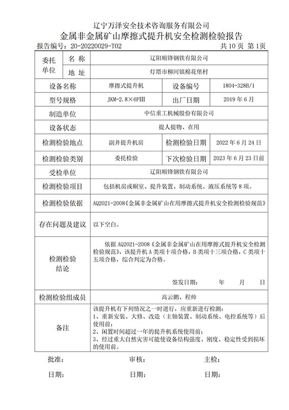 | 受检单位 | 辽阳顺锋钢铁有限公司 | |
