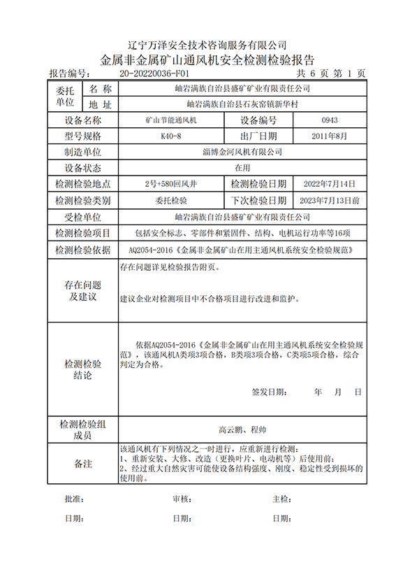 | 受检单位 | 岫岩满族自治县盛矿矿业有限责任公司 | |
