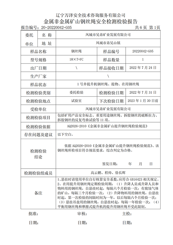 | 受检单位 | 凤城市兄弟矿业发展有限公司 | |
