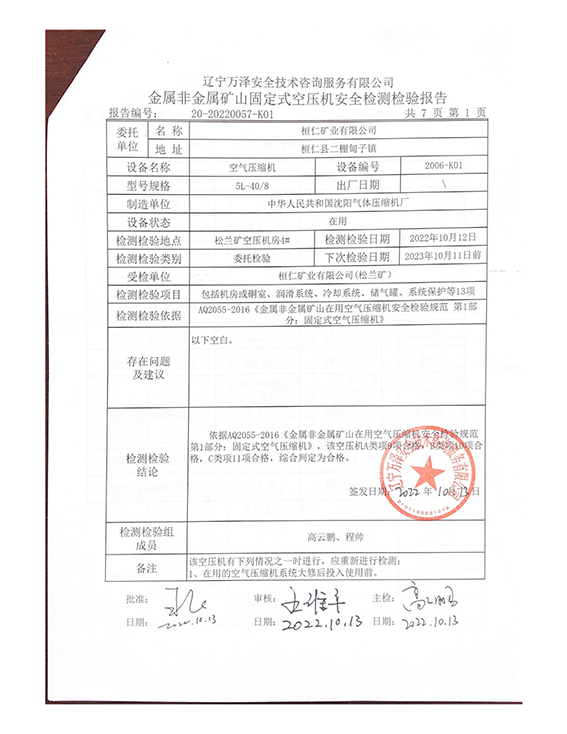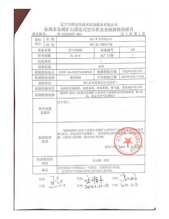 | 受检单位 | 桓仁矿业有限公司 | |