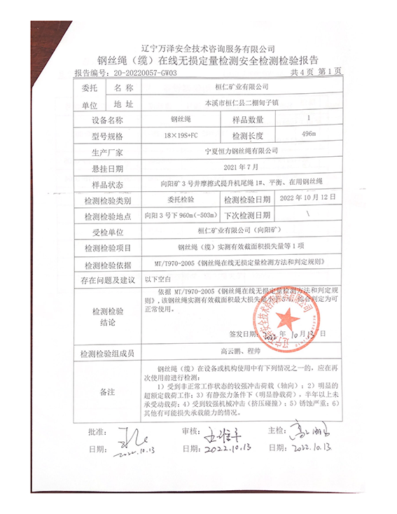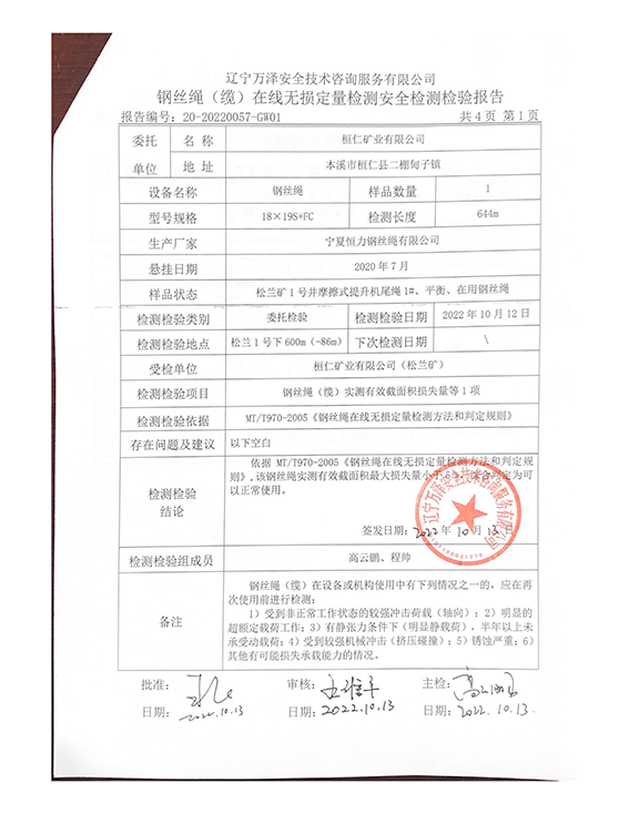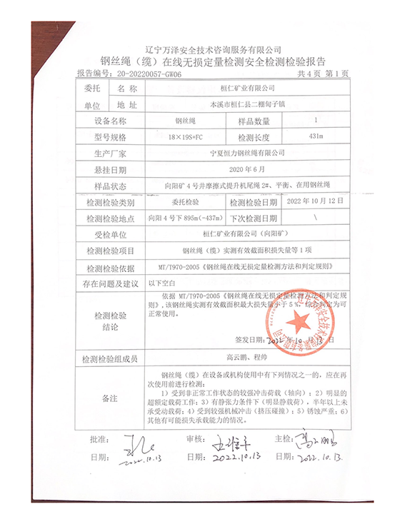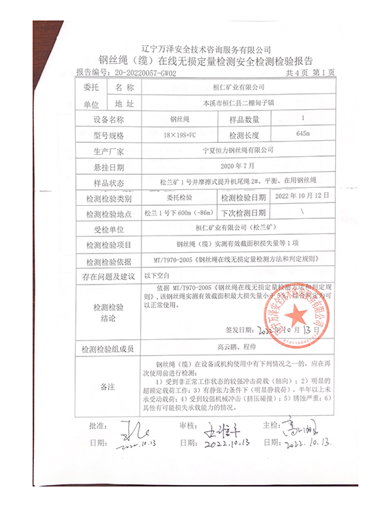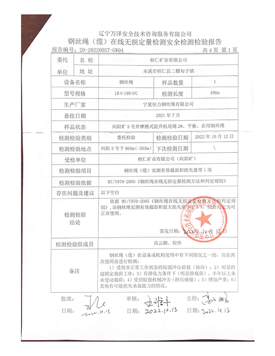 | 9 | 提升钢丝绳 | — |