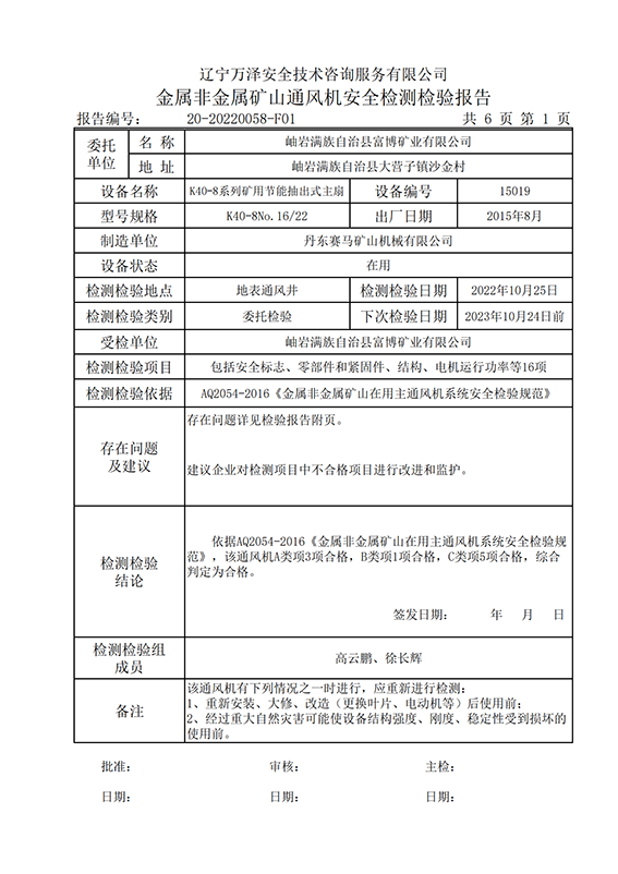 | 受检单位 | 岫岩满族自治县富博矿业有限公司 | |
