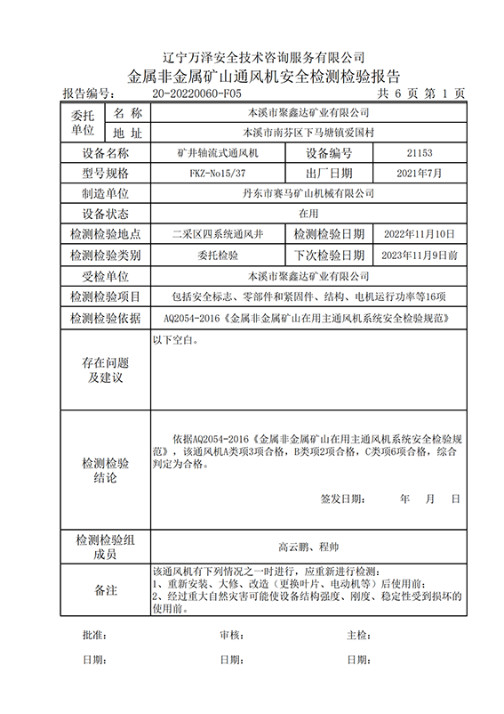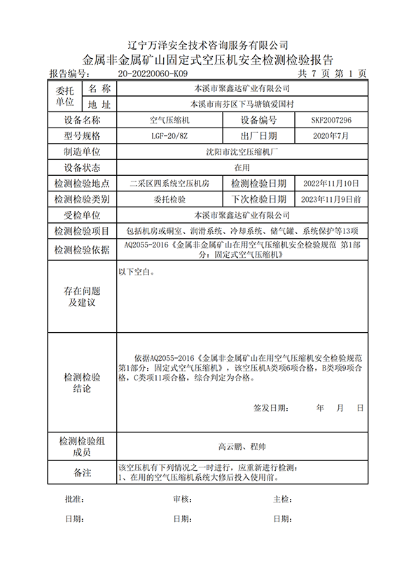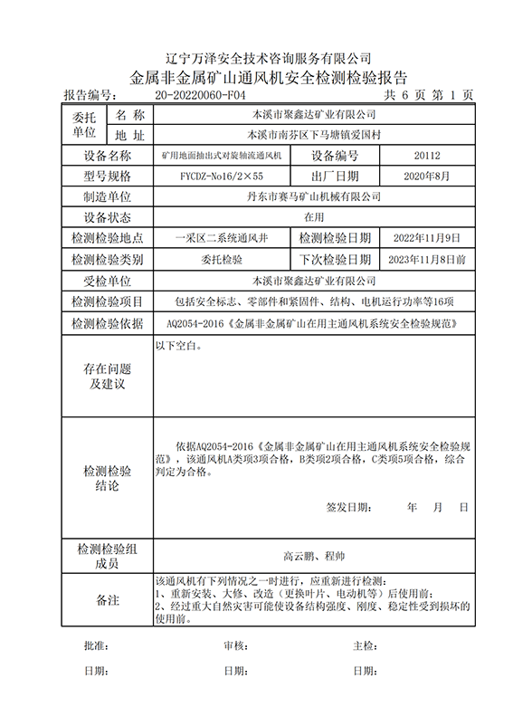 | 受检单位 | 本溪市聚鑫达矿业有限公司 | |