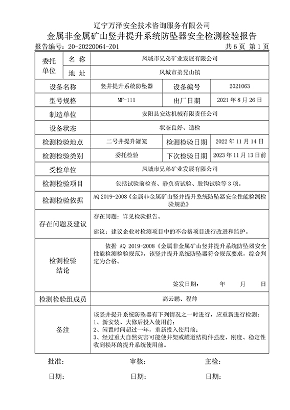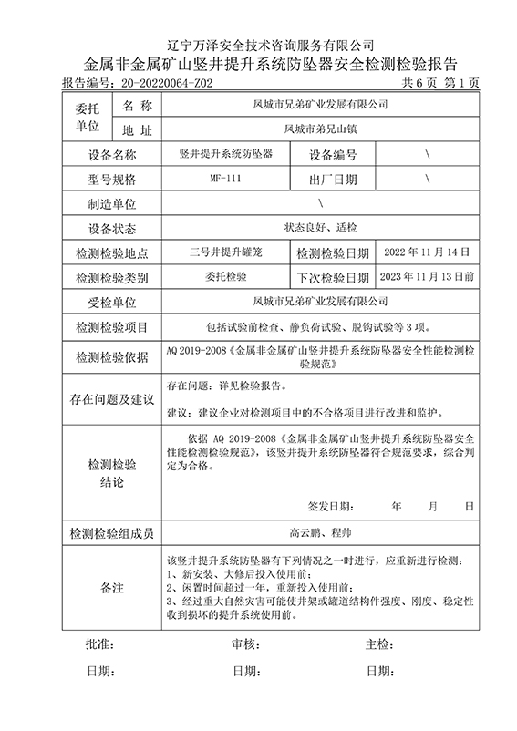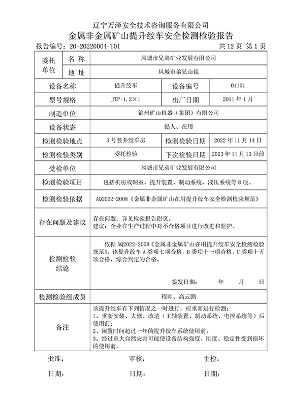 | 受检单位 | 凤城市兄弟矿业发展有限公司 | |