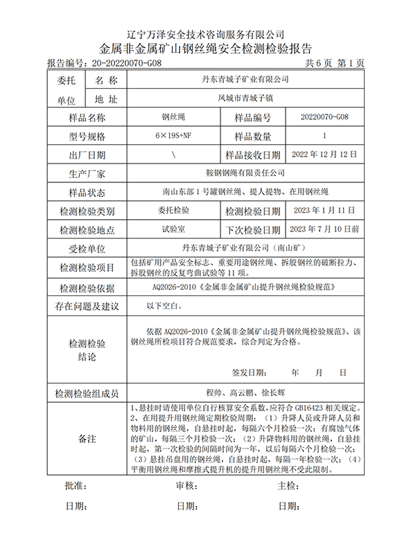 | 受检单位 | 丹东青城子矿业有限公司 | |