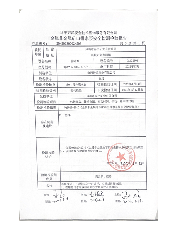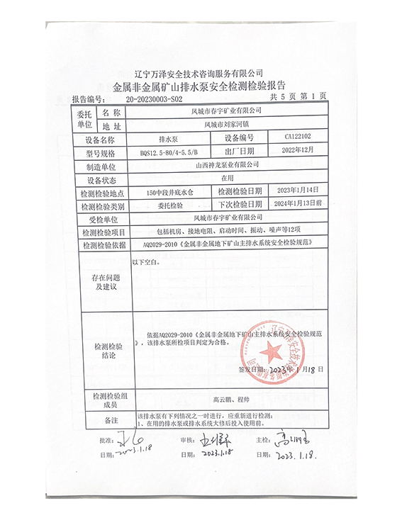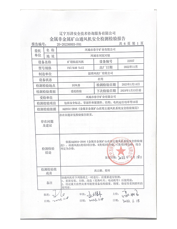 | 受检单位 | 凤城市春宇矿业有限公司 | |