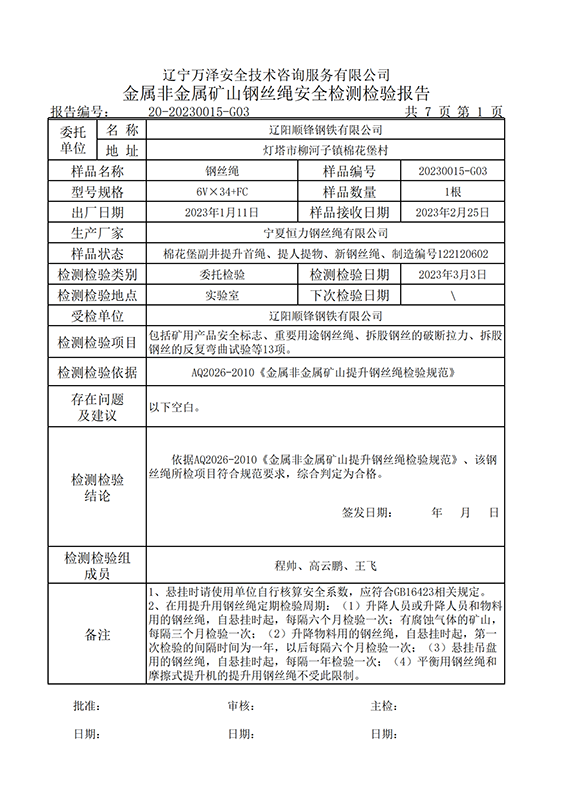 | 受检单位 | 辽阳顺锋钢铁有限公司 | |
