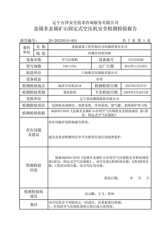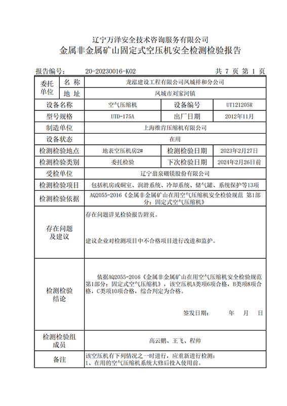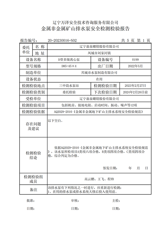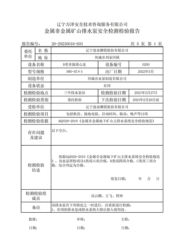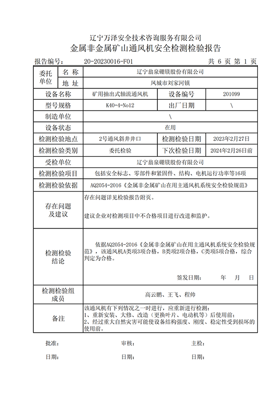 | 受检单位 | 辽宁翁泉硼镁股份有限公司 | |