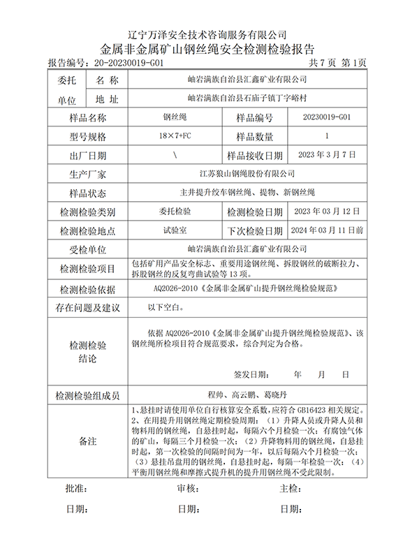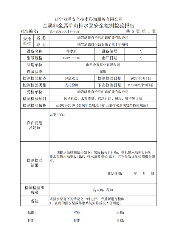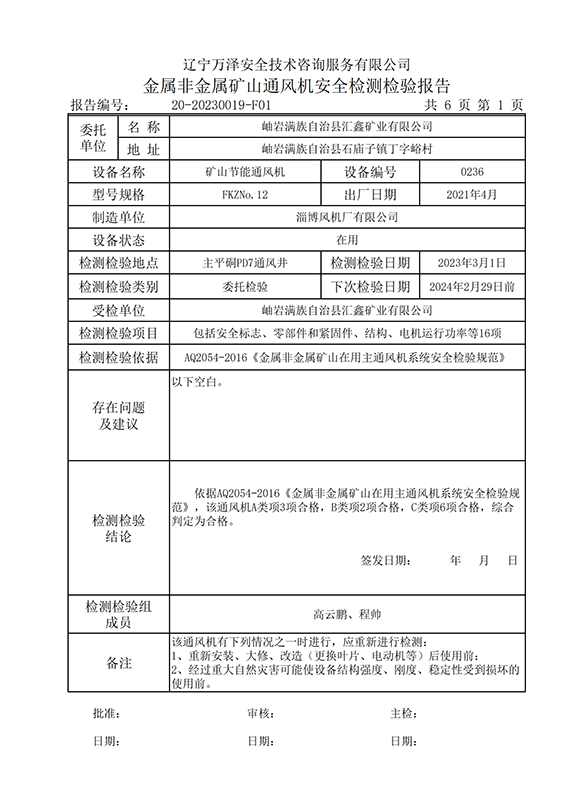 | 受检单位 | 岫岩满族自治县汇鑫矿业有限公司 | |