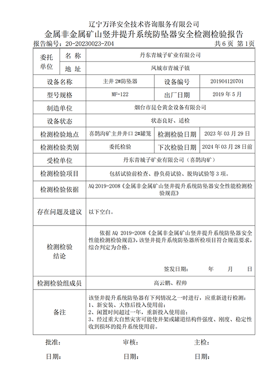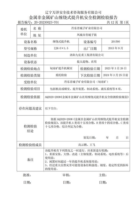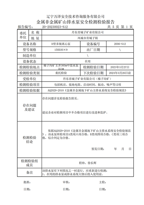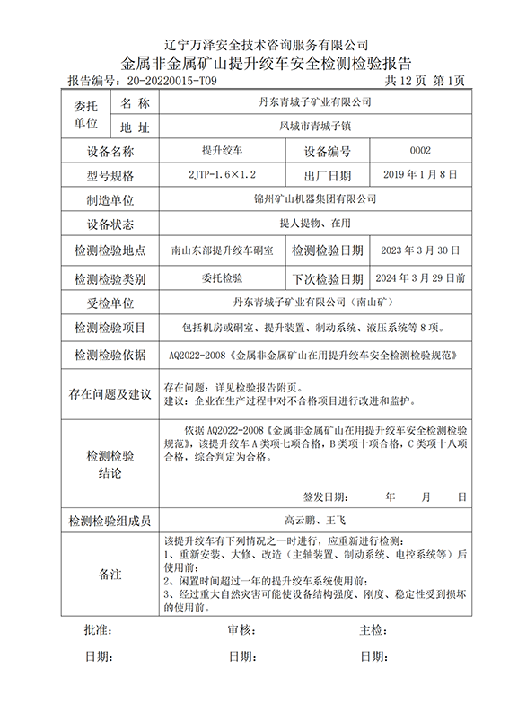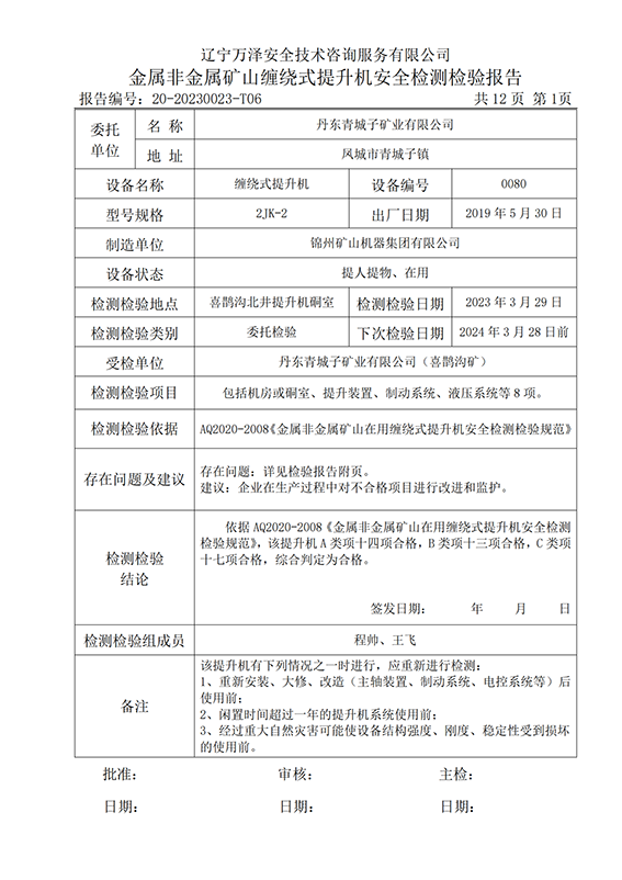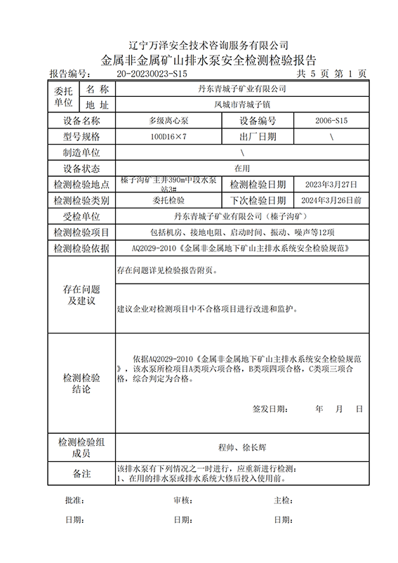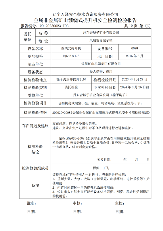 | 受检单位 | 丹东青城子矿业有限公司 | |