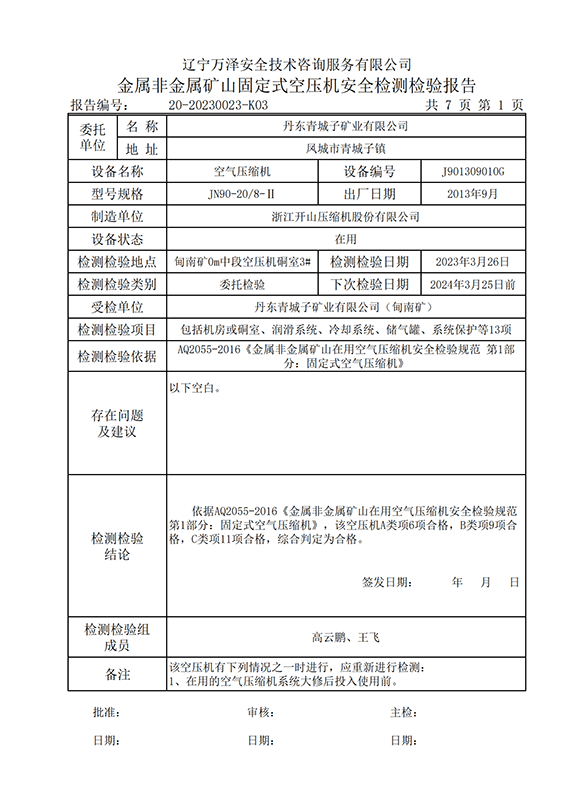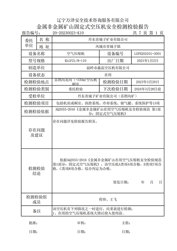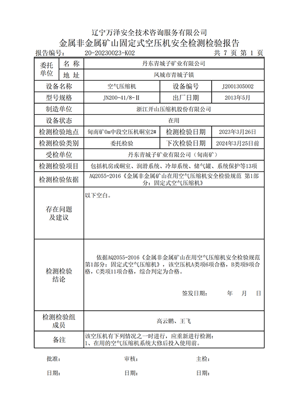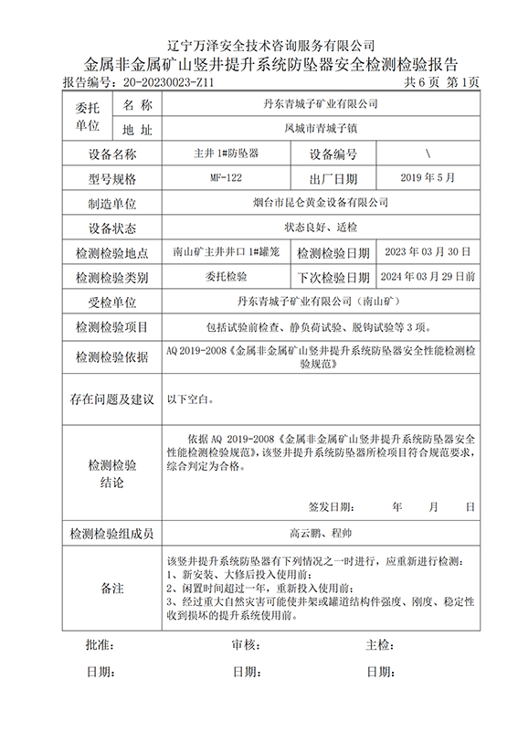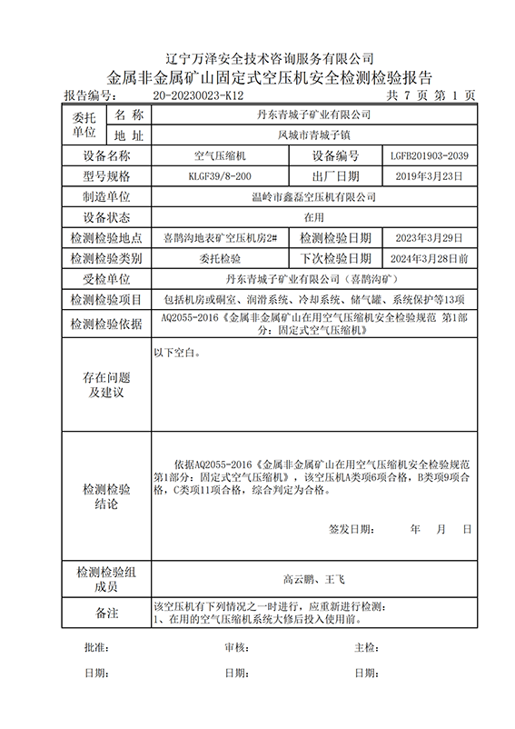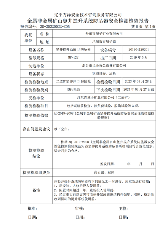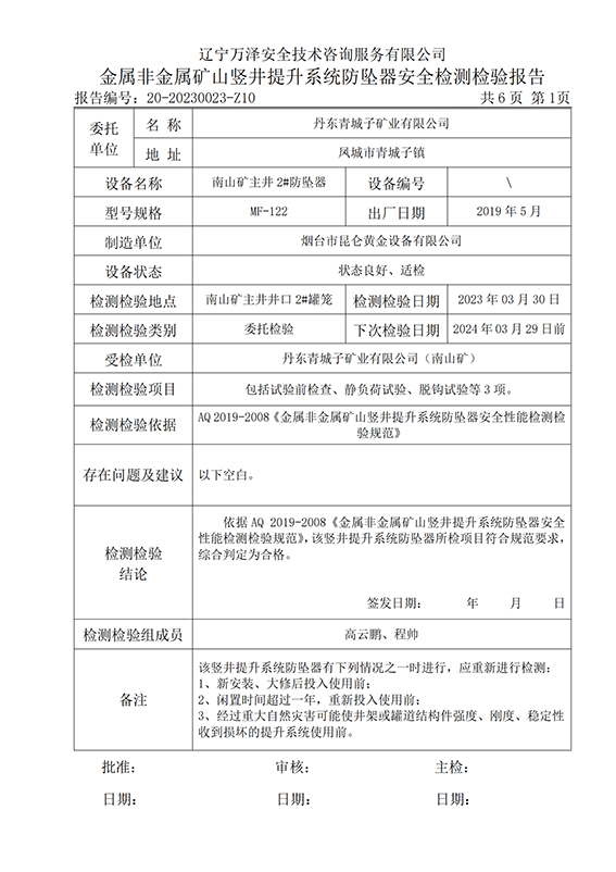 | 受检单位 | 丹东青城子矿业有限公司 | |