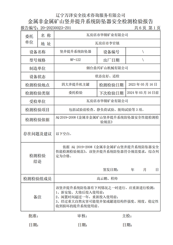 | 受检单位 | 瓦房店市华铜矿业有限公司 | |