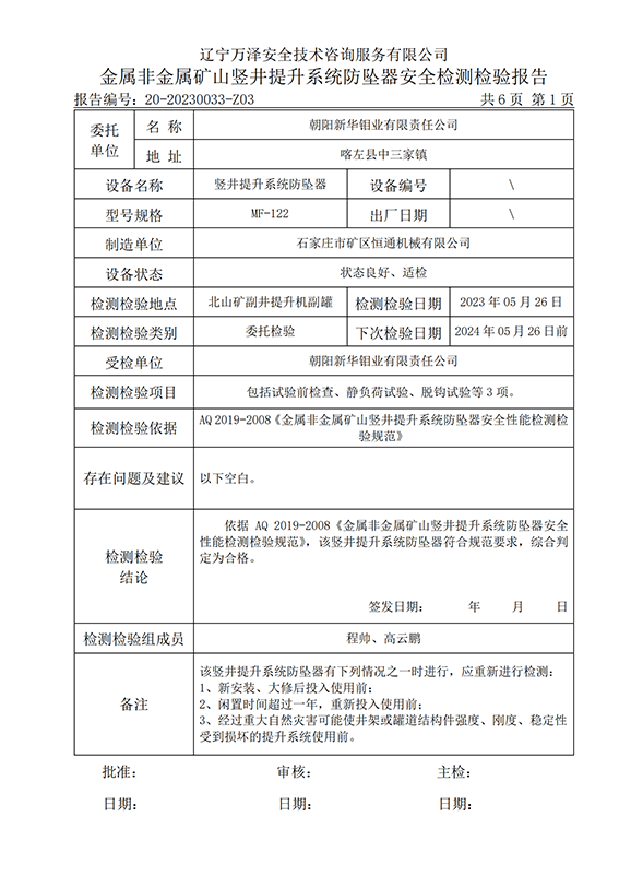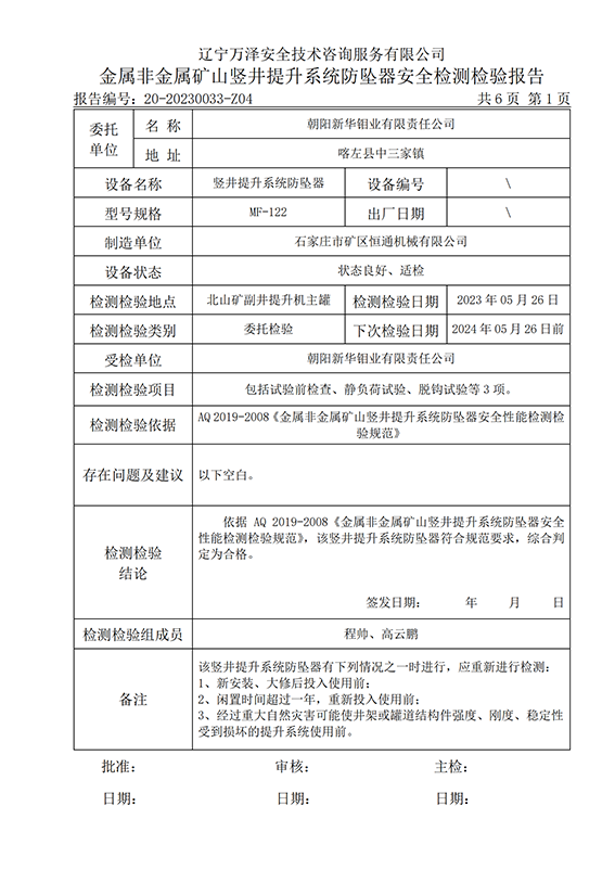 | 受检单位 | 朝阳新华钼业有限责任公司 | |