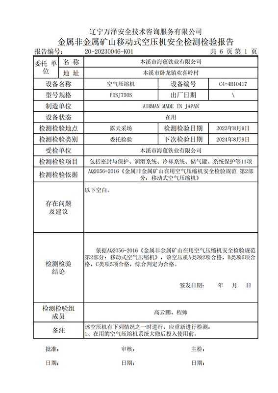 | 受检单位 | 本溪市海蕴铁业有限公司 | |