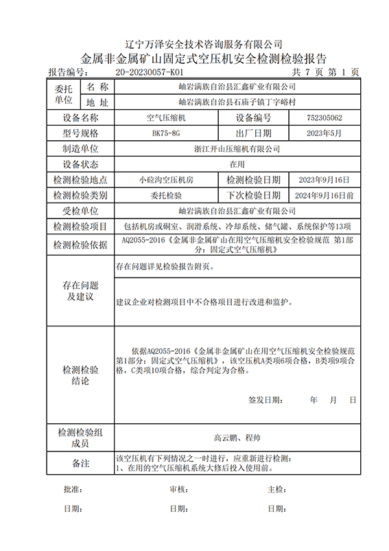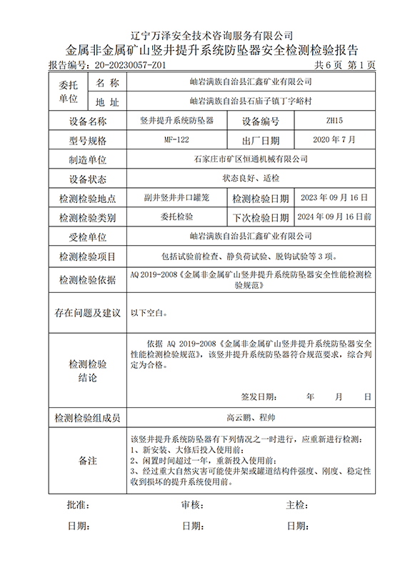 | 受检单位 | 岫岩满族自治县汇鑫矿业有限公司 | |