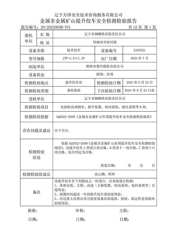 | 受检单位 | 辽宁首钢硼铁有限责任公司 | |