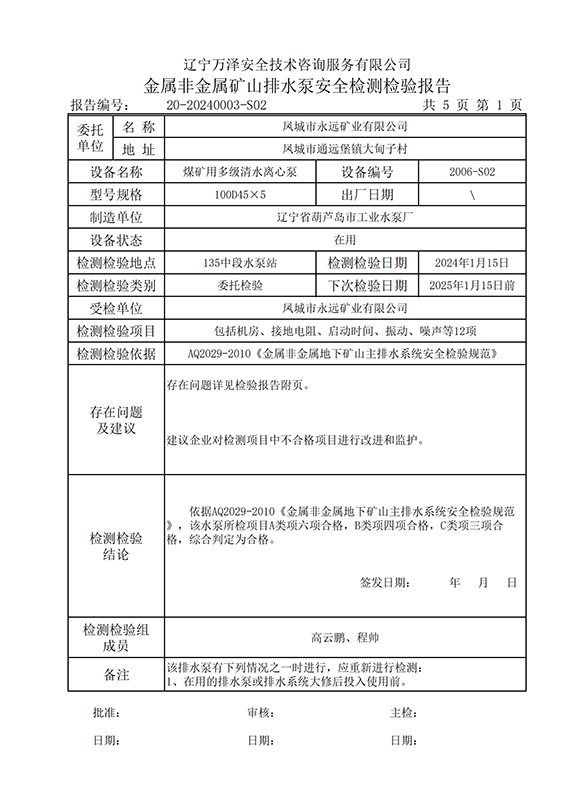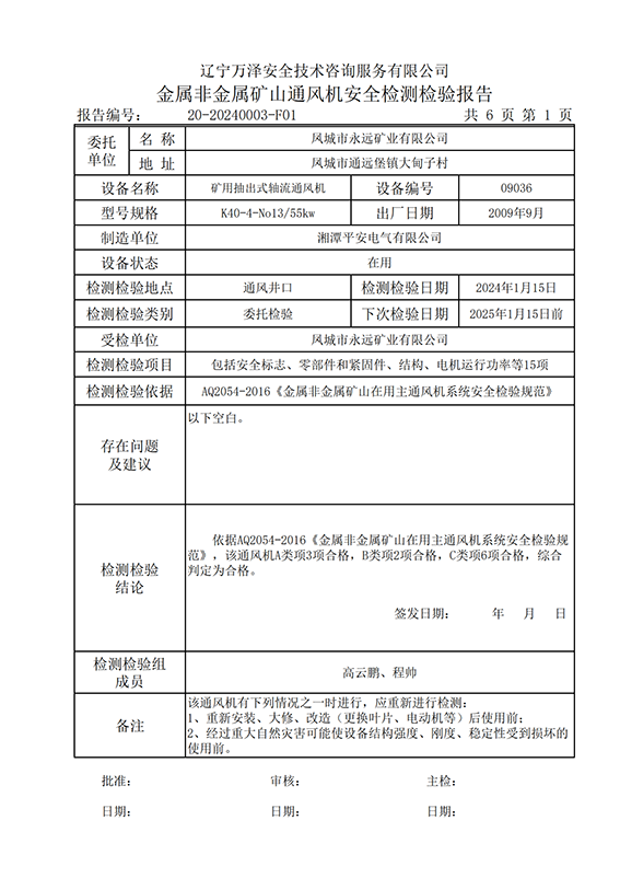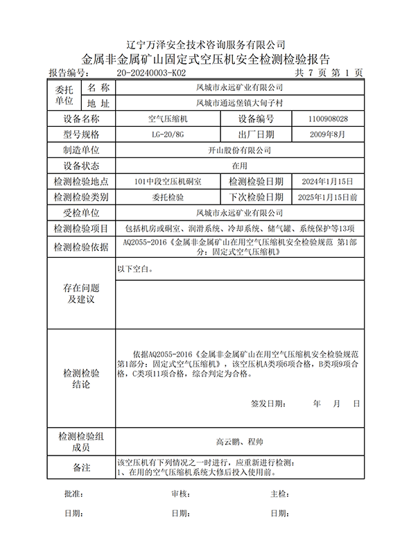 | 受检单位 | 20-20240003凤城市永远矿业有限公司 | |