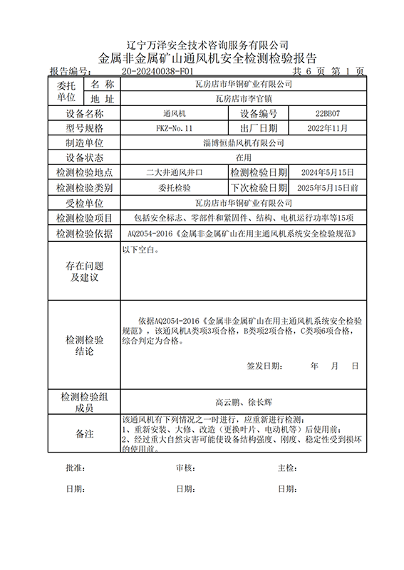 | 受检单位 | 20-20240038瓦房店市华铜矿业有限公司 | |