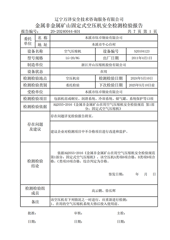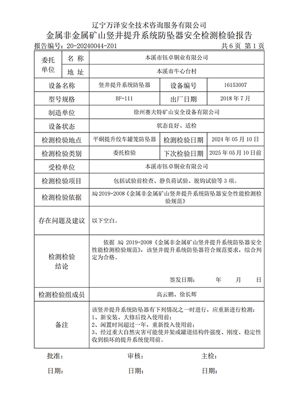 | 受检单位 | 20-20240044本溪市钰卓铜业有限公司 | |