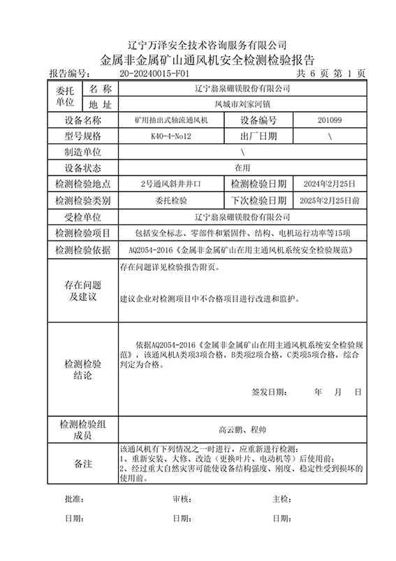 | 受检单位 | 20-20240015辽宁翁泉硼镁股份有限公司 | |