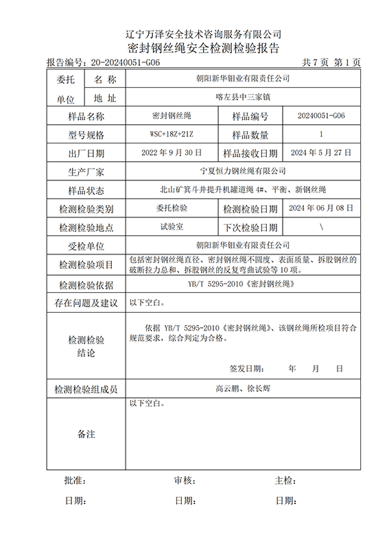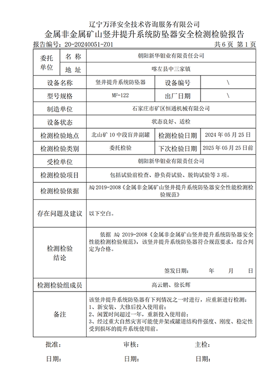 | 受检单位 | 20-20240051朝阳新华钼业有限责任公司 | |