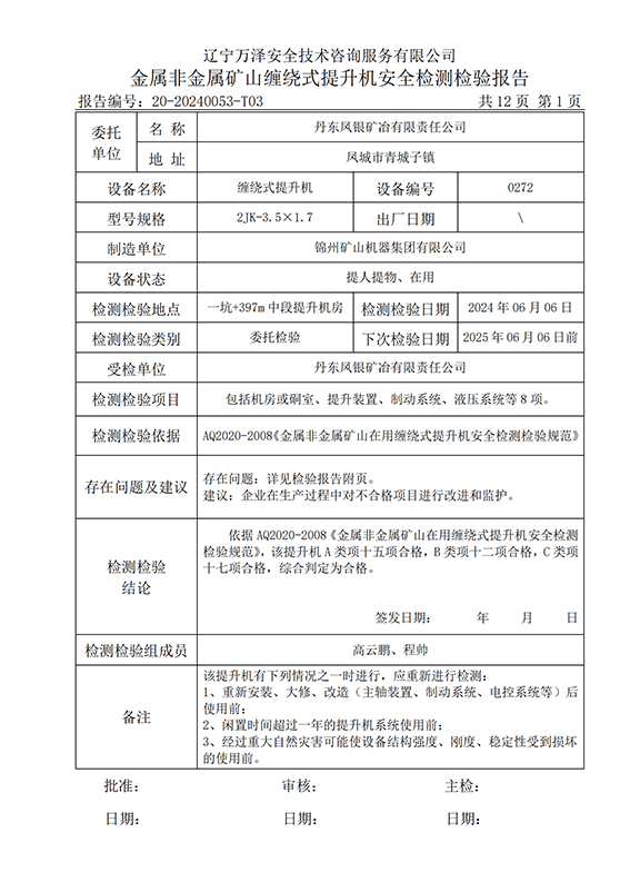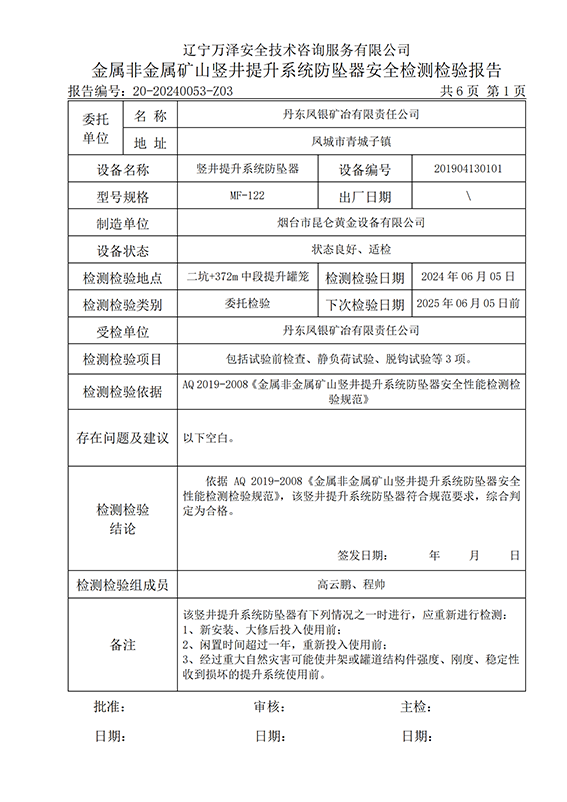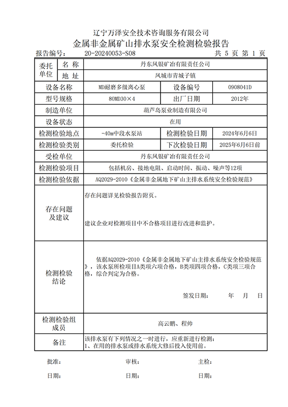 | 受检单位 | 20-20240053丹东凤银矿冶有限责任公司 | |