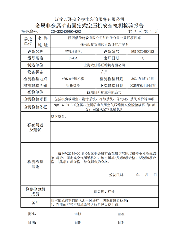 | 受检单位 | 20-20240058抚顺日升矿业有限公司 | |