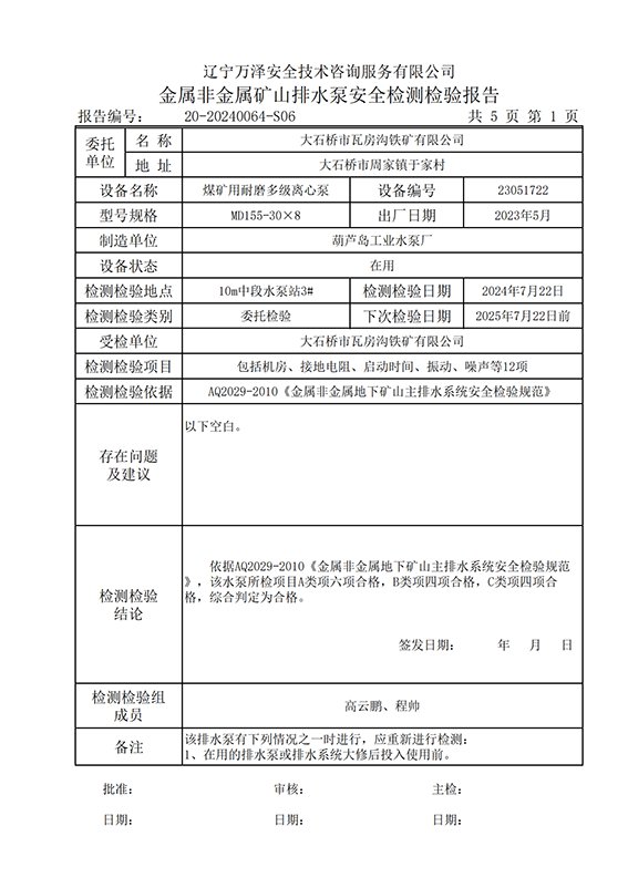| 受检单位 | 20-20240064大石桥市瓦房沟铁矿有限公司 | |