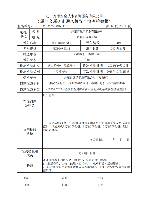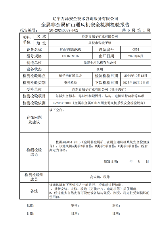 | 受检单位 | 20-20240087丹东青城子矿业有限公司 | |