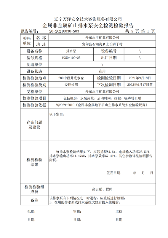 | 受检单位 | 丹东永丰矿业有限公司 | |