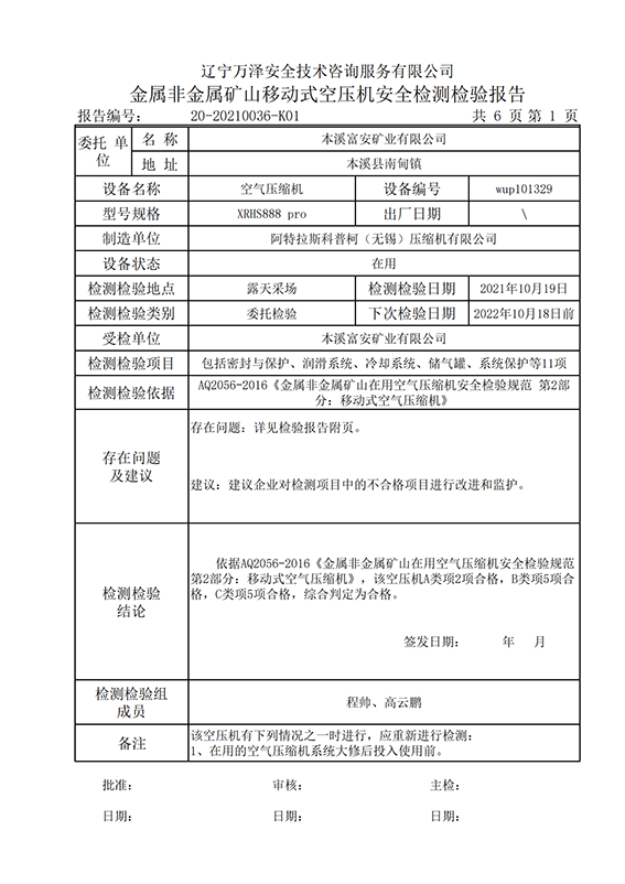 | 受检单位 | 本溪富安矿业有限公司 | |