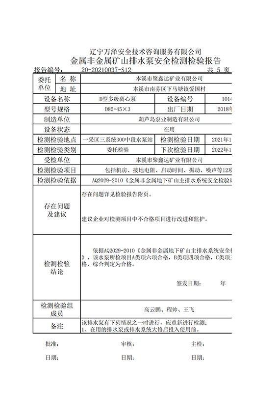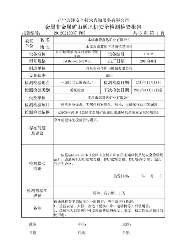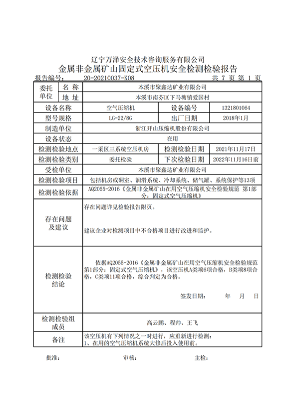 | 受检单位 | 本溪市聚鑫达矿业有限公司 | |