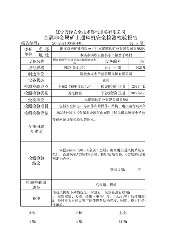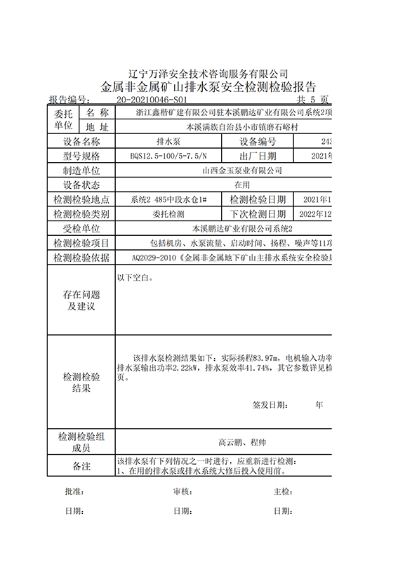 | 受检单位 | 本溪鹏达矿业有限公司 | |