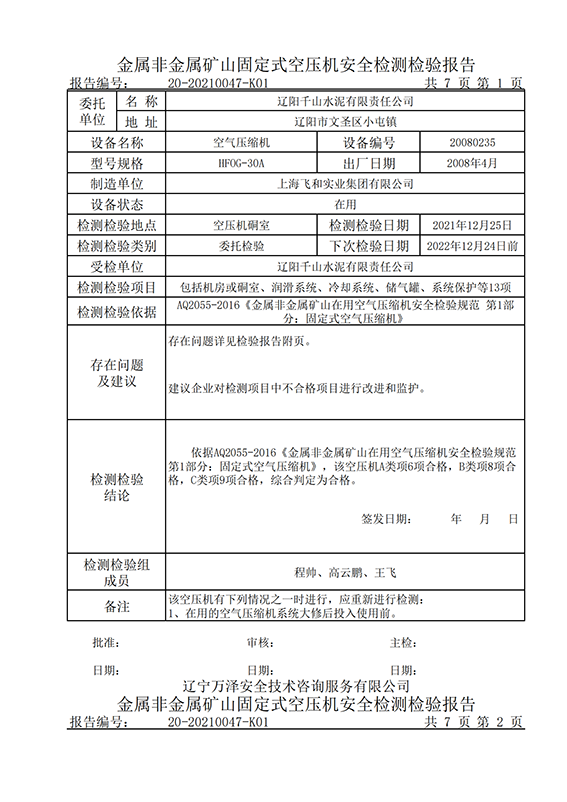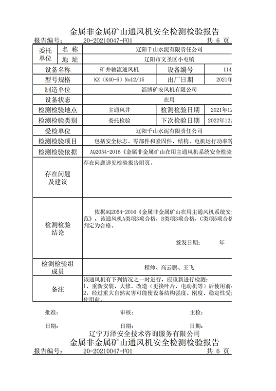 | 受检单位 | 辽阳千山水泥有限责任公司 | |